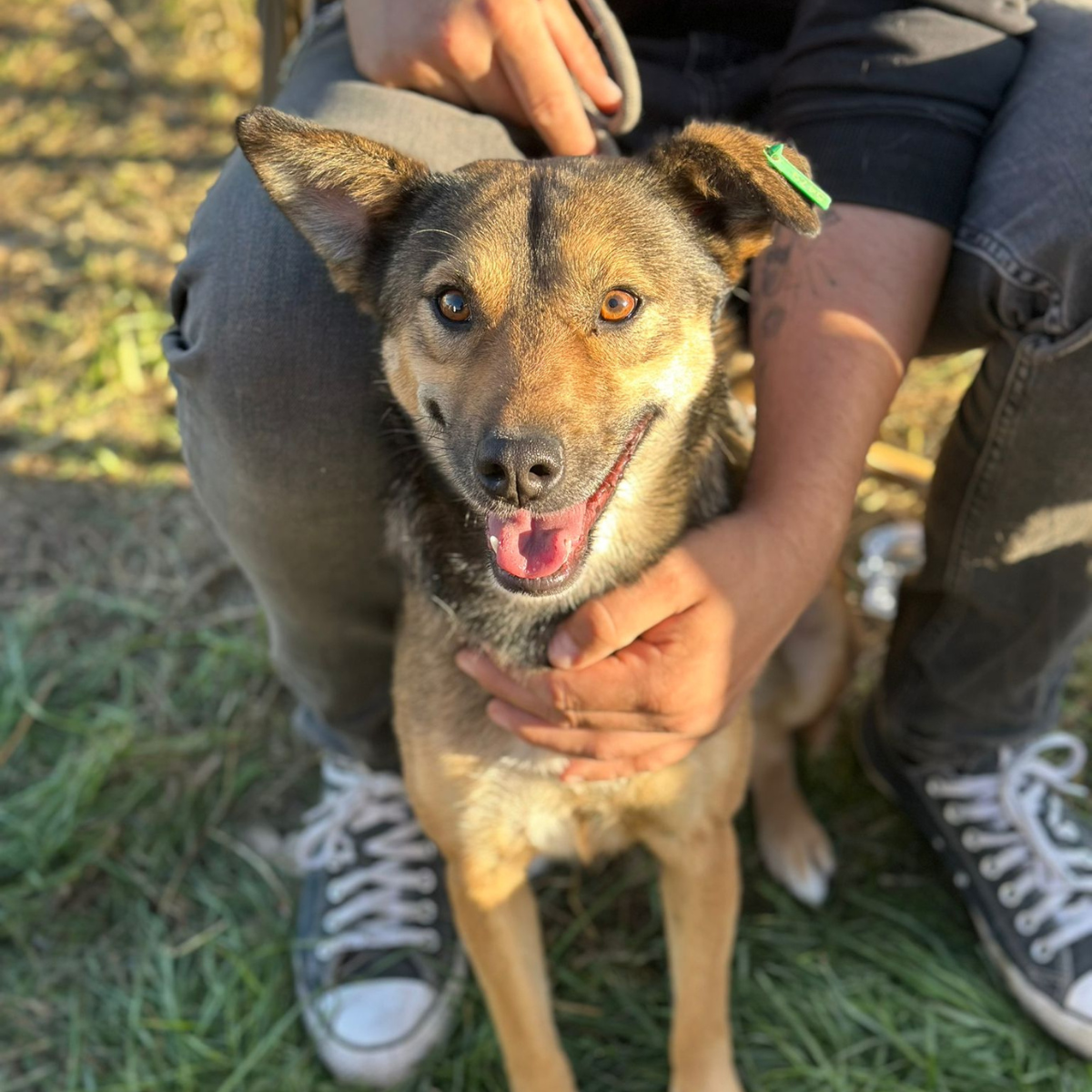 Cleo is een lieve, aanhankelijke middelgrote hond van ongeveer 45 cm. Ze werd in april 2025 gered uit het openbare asiel van Onesti, Roemenië, en verblijft nu veilig bij haar pleeggezin in Spijk, Groningen.