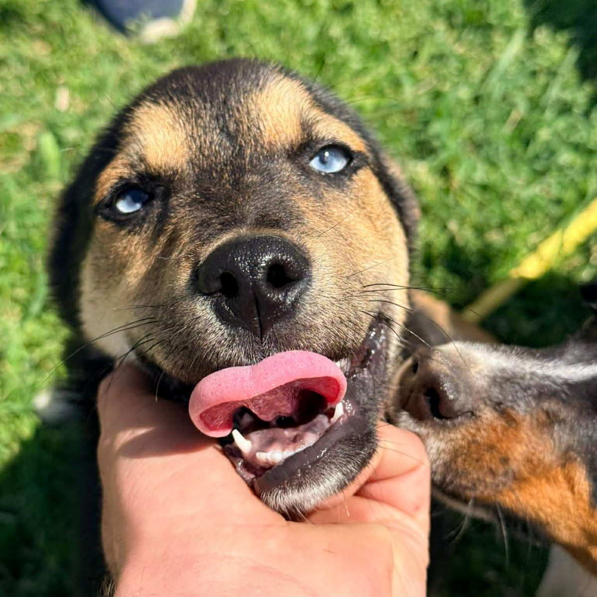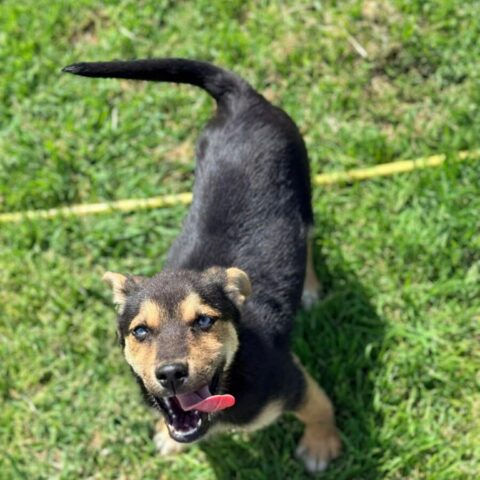 Daki werd als kleine pup achtergelaten in een dorpje, vanuit daar werd hij gered door onze rescuer Viktor. Hij had in zijn jonge leven al veel te overwinnen, zoals parvo, corona en demodex, maar zoals u kunt zien is hij helemaal bovenop gekomen en een heerlijke spring in het veld geworden.