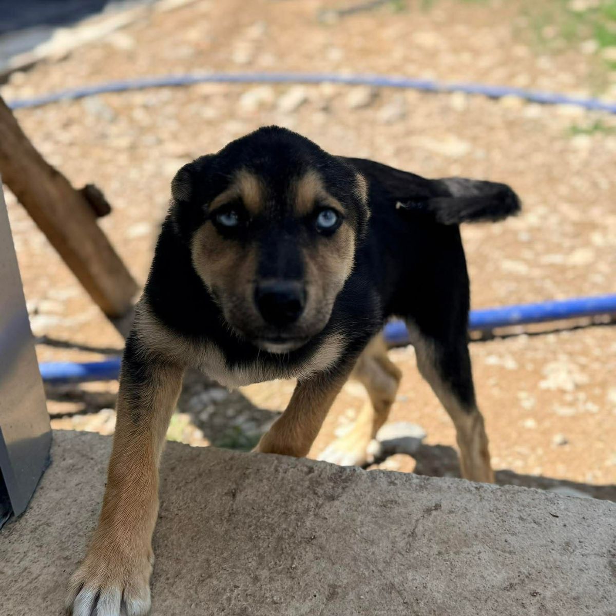 Daki is sociaal met andere honden en gaat in de shelter ook goed met katten. Echter denken we wel dat een kat wel, met zijn energie, zelfverzekerd moet zijn.