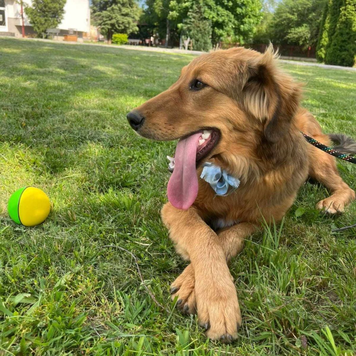 In de shelter is hij de baas over iedereen. Vooral als er voer bij komt kijken. Iedereen heeft respect voor hem en zolang dat voer er niet is, is hij met iedereen dikke vrienden. Hij is blij en enthousiast om zijn rescuers te zien komen, want dat gaat gepaard met aandacht en knuffels.