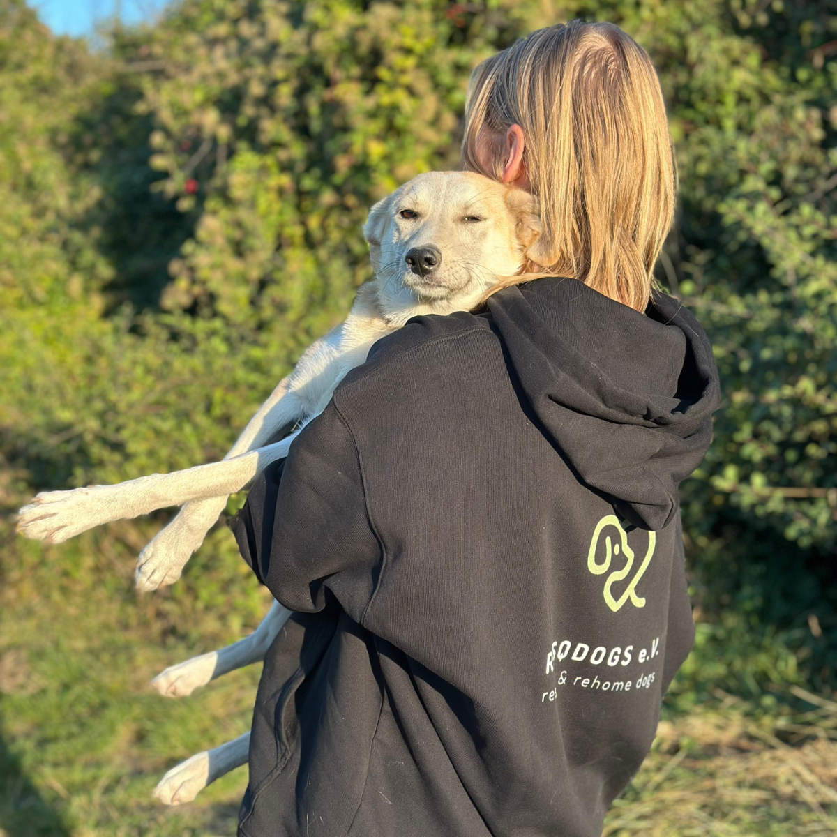 Honey werd samen met haar moeder Mala en zusje Nilla naar het openbare asiel in Onesti, Roemenië gebracht. Hun moeder, een prachtige Malinois-mix, nam zelfs drie adoptiepups onder haar hoede – helaas hebben die het niet overleefd. Maar Honey had geluk: ze groeide op in veiligheid in de opvang van onze rescuer Gabriela en bloeide daar op tot een prachtige, evenwichtige jonge hond.