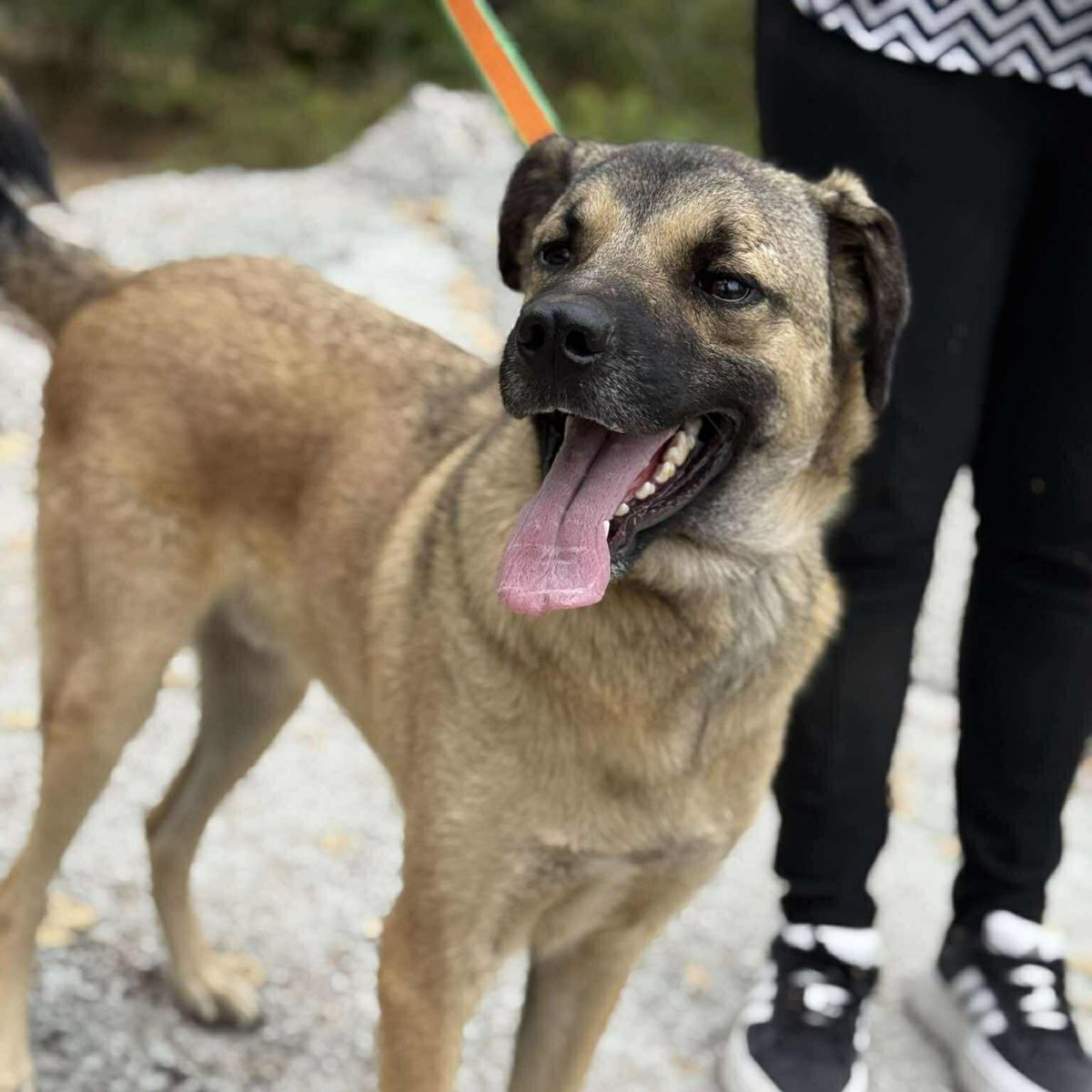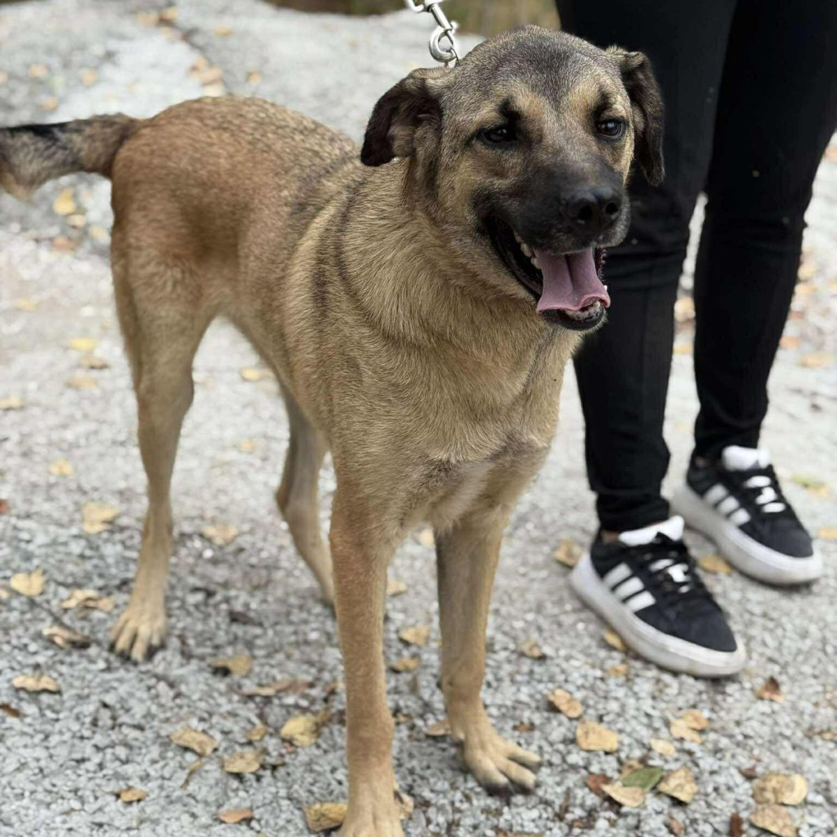 Hughie is sociaal met alle andere honden in de shelter en reageert ook goed op katten. Het is uiteraard nog een jonge hond, die nog veel moet leren. Hughie is maar al te graag lekker aan het stoeien en spelen met andere honden. Hij zal het wel nodig hebben om er lekker op uit te trekken.