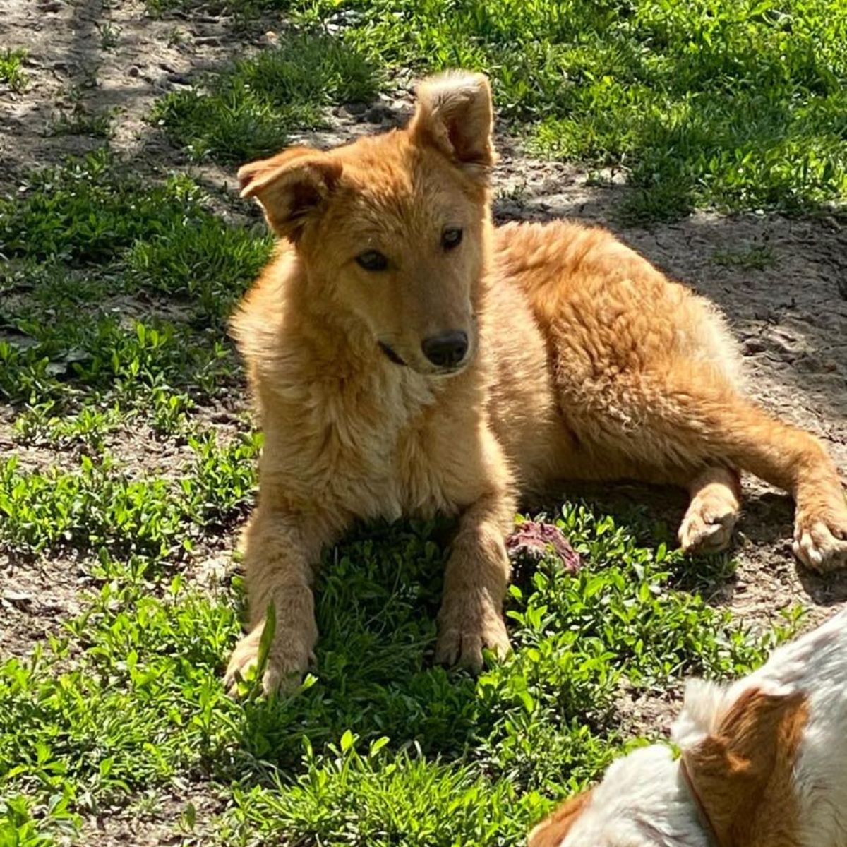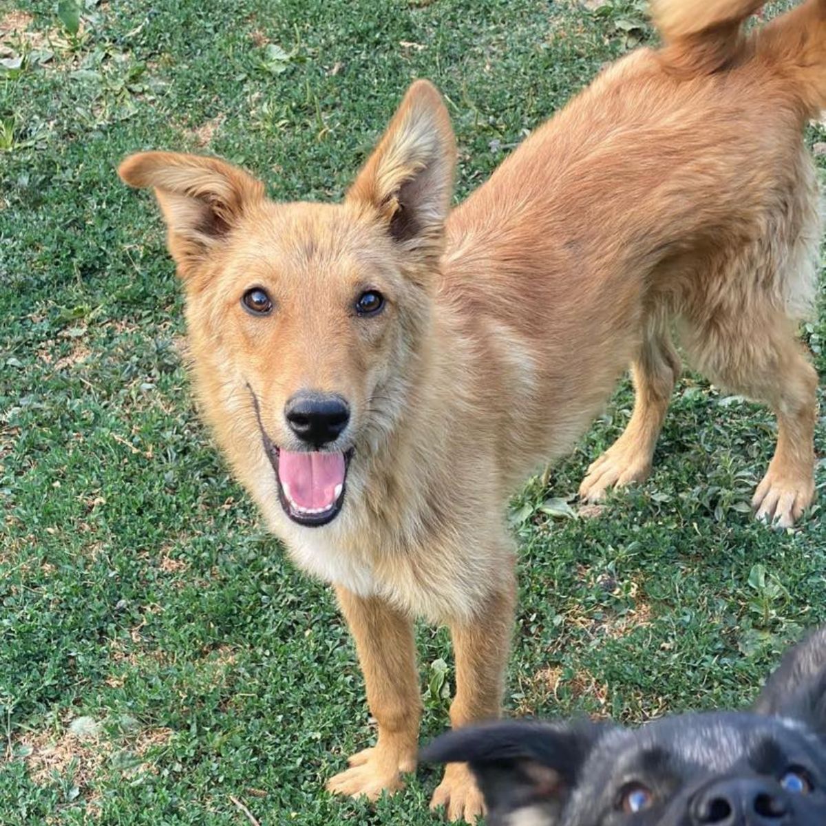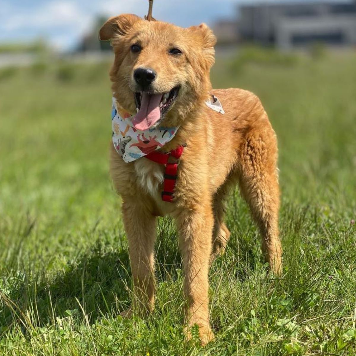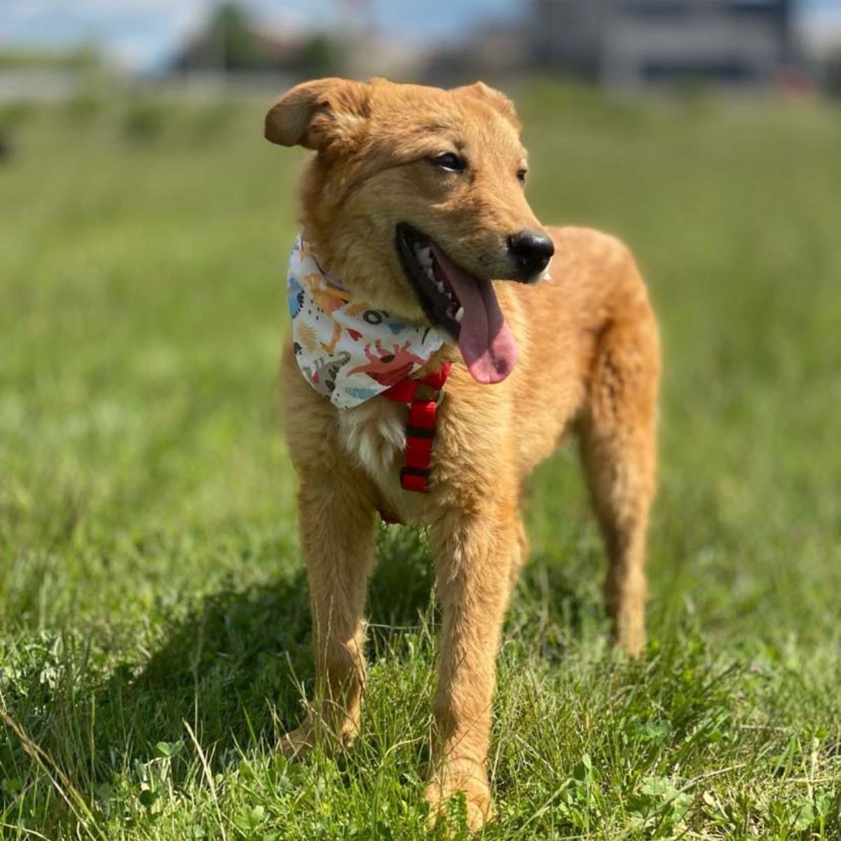Hij is een speelse en vrolijke vriend. Sociaal met andere honden en dol op de aandacht van mensen. Momenteel meet hij 50 cm op de schoft en weegt hij zo’n 22 kg. Hij zal naar verwachting uitgegroeid een middelgrote tot grote hond zijn.