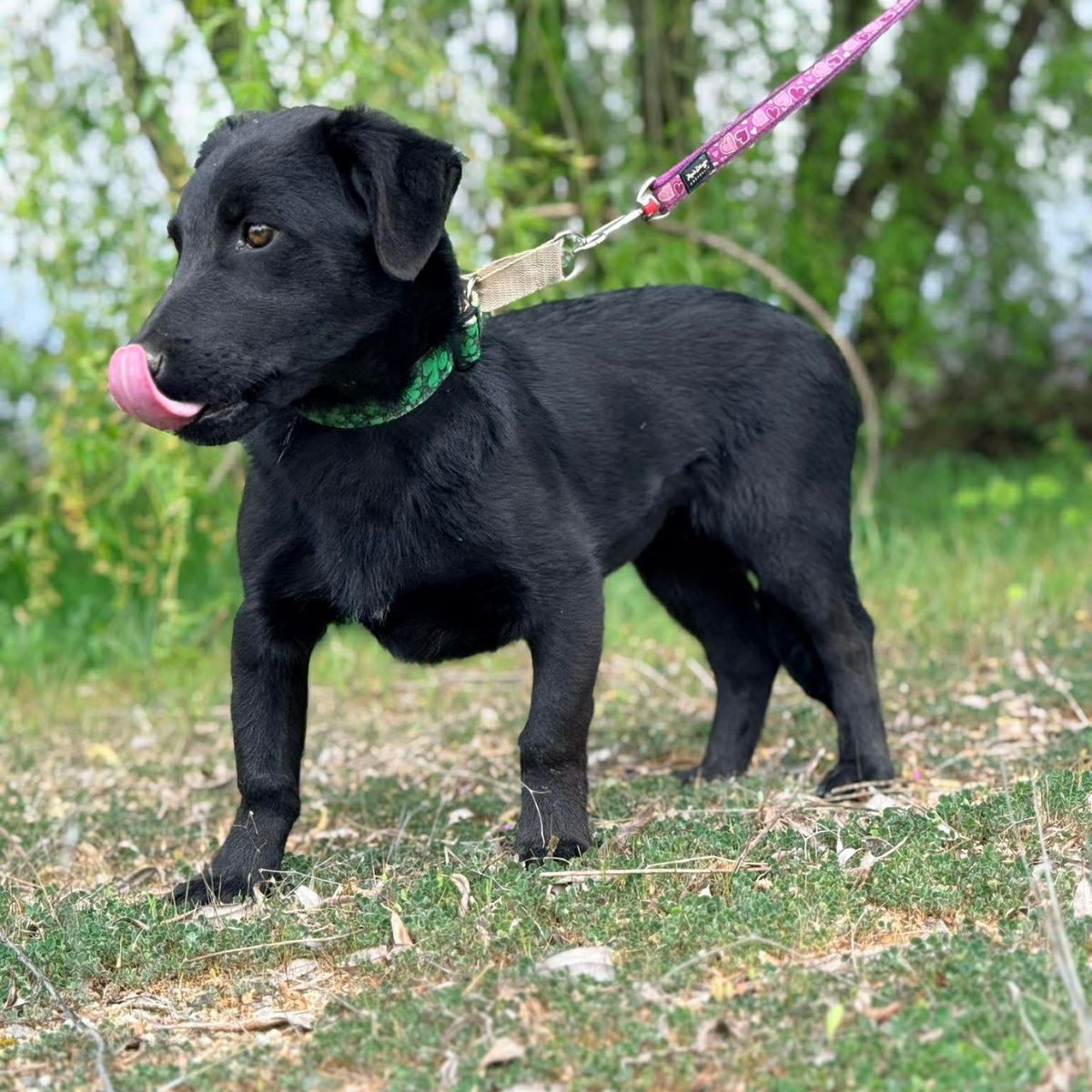 Mia is sociaal met honden en katten en heel lief voor mensen. Zij werpt zich in haar onderdanige houding voor iedereen maar op de grond. Als de dit bij mensen doet komen er meestal knuffels om de hoek kijken, waar ze maar al te graag van geniet. Wandelen aan de riem doet ze ook al erg goed.