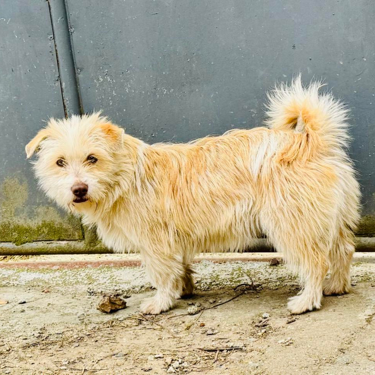 Pixie werd gevonden op straat in Brașov, Roemenië, waar ze vrolijk achter mensen en honden aanliep op zoek naar aandacht en eten. Niemand meldde zich ooit voor haar, maar inmiddels heeft ze haar eerste stappen naar een nieuw leven gezet en laat ze zien wat voor bijzondere hond ze is.