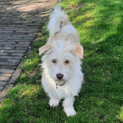Pixie is een kleine, energieke en ontzettend sociale hond, geboren rond februari 2024. Ze verblijft momenteel in een gastgezin in Maastricht, waar ze zich stap voor stap aanpast aan het leven in een huis en wacht op haar eigen thuis.