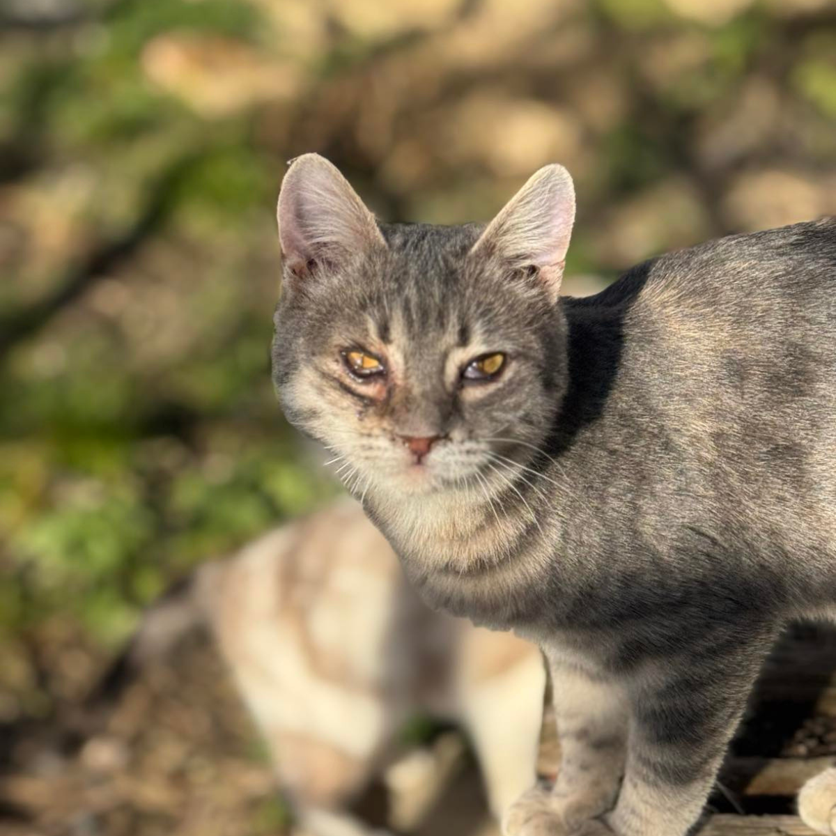 Maak kennis met Jill, een bijzonder liefdevol poesje geboren in februari 2024 dat momenteel verblijft bij onze redster Anka in Brașov, Roemenië. Jill werd als kitten gevonden op het terrein van een magazijn en was toen ernstig ziek door een zware virusinfectie. De dierenartsen wisten niet zeker of ze het zou redden, maar na maanden intensieve zorg herstelde ze volledig. Haar rechteroog bleef bedekt met een dun vliesje en hoewel ze hiervoor een corrigerende operatie heeft gehad en goed genezen is, ziet het oog er nog wat anders uit. Af en toe heeft ze oogdruppels nodig, maar verder is het puur cosmetisch en heeft ze er geen last van.