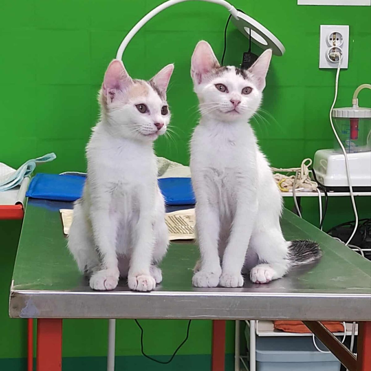 Ze zijn intussen volledig gevaccineerd, hebben een paspoort en chip en worden voor vertrek nog eens getest. Een sterilisatie is nog niet gedaan, het is afhankelijk van vertrek volgend transport of dit nog wordt gedaan (gezien de leeftijd).